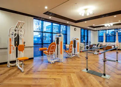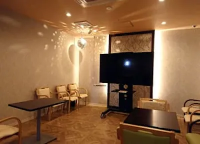 最新機種導入。ミラーボール完備の防音カラオケルームです。カラオケは大きな声で歌うことによる心肺機能向上と脳の活性化に効果が有ります。思い切り歌って楽しくリハビリしましょう。