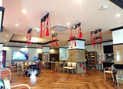 スペースを広く取ってありますので、車椅子や歩行器の方でも、ゆったり過ごせる空間です。