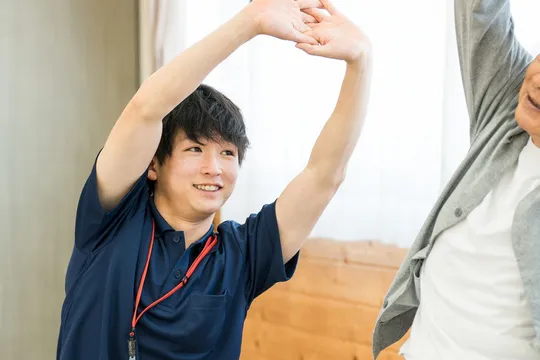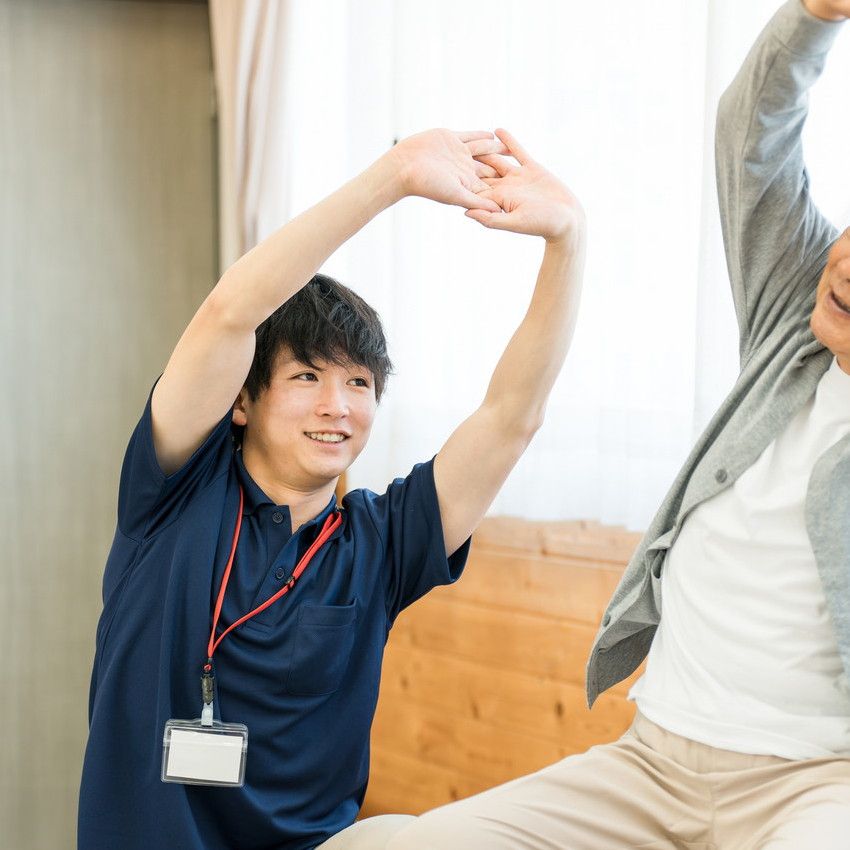デイサービスのご利用者さまに、一人ひとりの心身の状態に合わせて生活機能の維持・向上に必要な身体機能の訓練などを行っていただきます。
