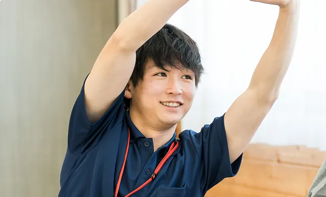介護職のスタッフと連携して、安全・安心してリハビリテーションに臨めるようにサポートします。