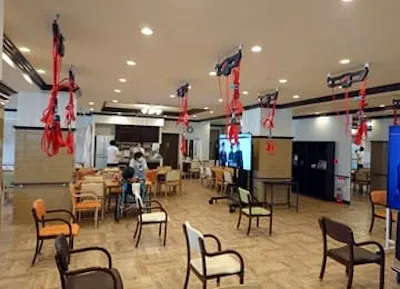 レッドコードはノルウェー生まれのリハビリ機器で、天井から下がった赤い紐(レッドコード)に掴まりながら、関節の可動域訓練や筋力のトレーニングが負担無く行えます。