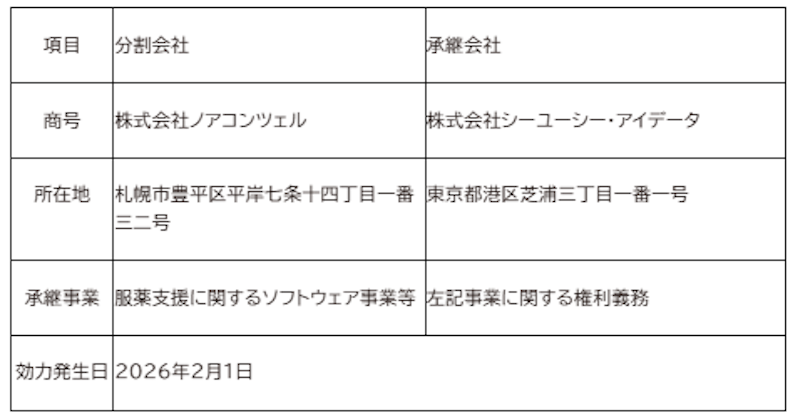 2026年2月1日を効力発生日として、株式会社ノアコンツェルが営んでおりました「服やっくん」事業を、会社分割(簡易吸収分割)により、グループ会社である株式会社シーユーシー・アイデータに承継しましたことをお知らせします。